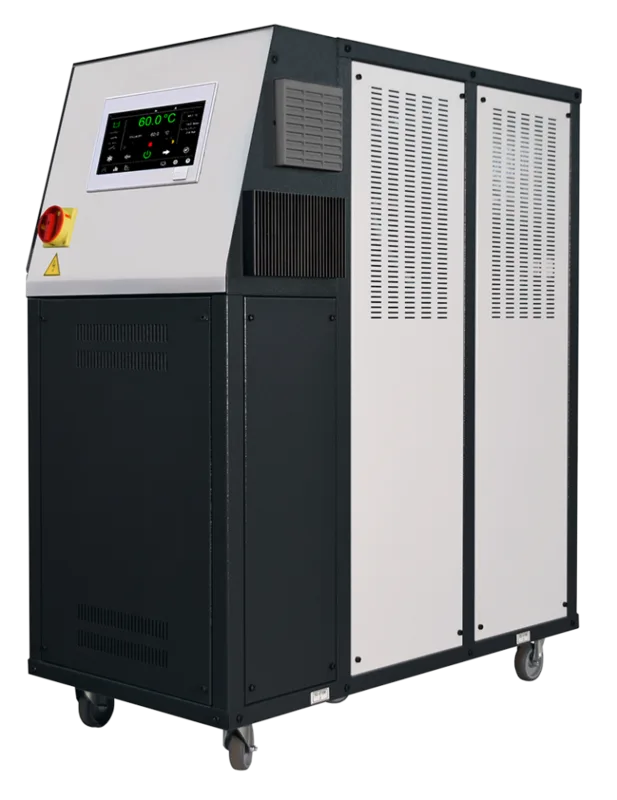 Büyük ölçek için su ile kalıp şartlandırma cihazı. Maks. 90°C, 7" dokunmatik ekran. 18 kW ısıtma, 1,8 kW pompa (100 l/min, maks. 5,8 bar).